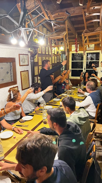 La nostra passeggiata in mezzo alla natura si è sviluppata alle pendici del santuario di Saiano, costeggiando il fiume Marecchia. La vista ci regalava da una parte la Repubblica di S. Marino illuminata e prepotentemente arroccata sul suo monte calcareo a strapiombo, e dall’altra parte l’immensità del mare. Dopo aver ricaricato le energie con una buona dose di aria pulita e con allegre chiacchere, la serata non poteva concludersi senza aver banchettato in una tipica locanda romagnola per beneficiare delle prelibatezze di quella meravigliosa regione. Un banchetto dove idee e risate si mescolavano con naturalezza, dove esperienze passate si fondevano con progetti futuri con un entusiasmante voglia di continuare il nostro percorso.